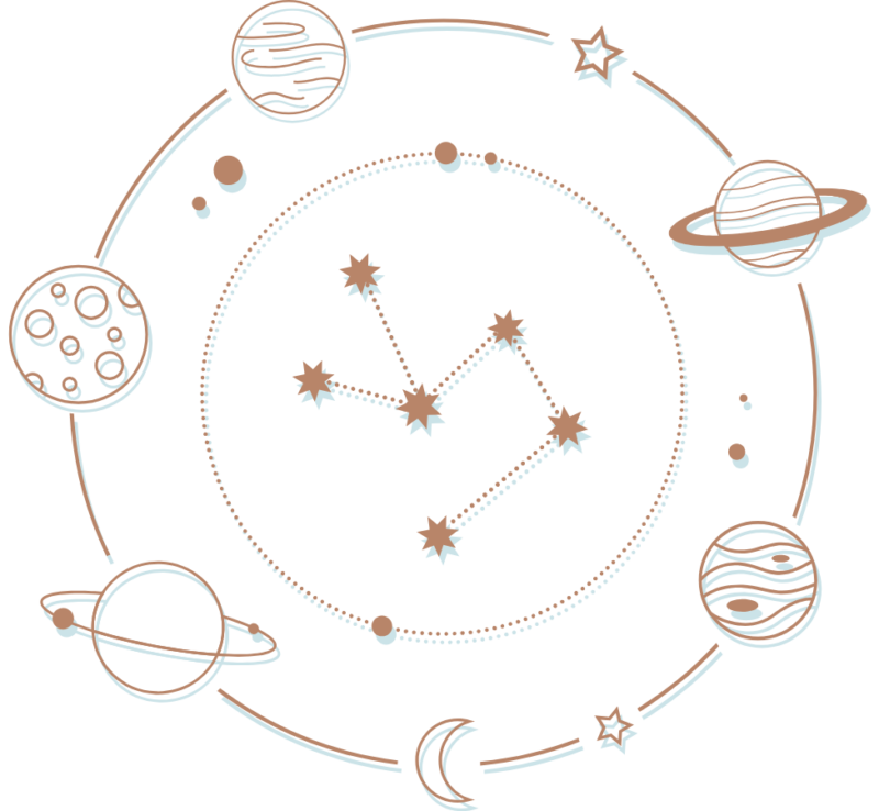 天体は象徴的な10個の天体、『太陽・月・水星・金星・火星・木星・土星・天王星・海王星・冥王星』を用います。