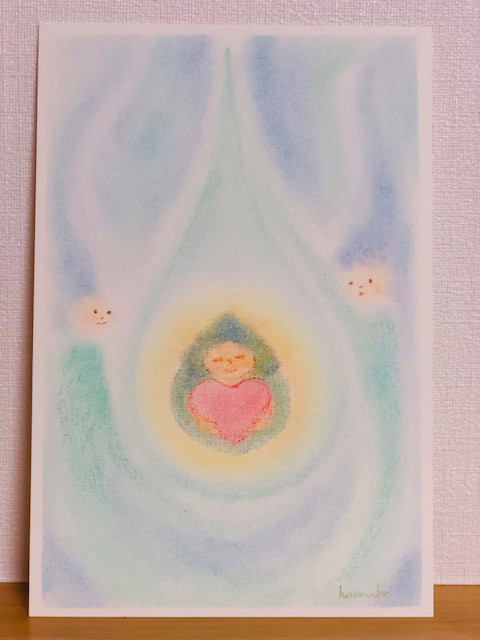 ハガキサイズの作品で、絵の裏には、